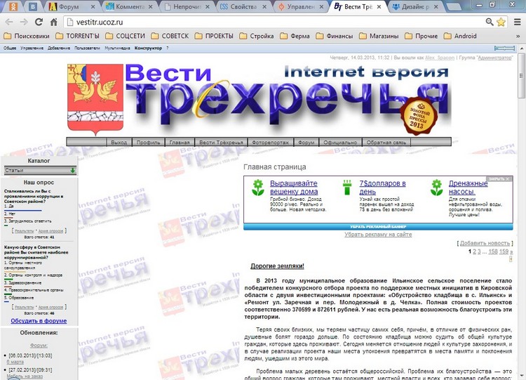 Есть проблемы с модулями новости и каталог статей. Дело в том, что вид материалов получился оборванным. Где-то есть провалы, "черные дыры", образно говоря.