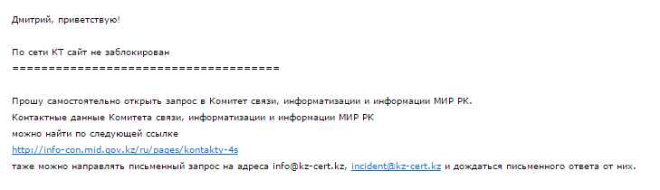 На данное время ведется переписка со службой реагирования на компьютерные инциденты http://kz-cert.kz/ru/