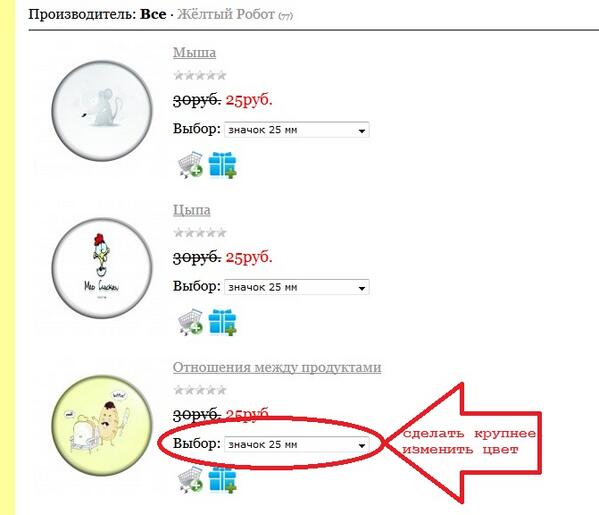 Никак не получается найти свойства функции $Options$ которая отвечает за выбор свойств товара. Мне многого не надо, просто хотел сделать эту надпись покрупнее и поярче, а то покупатели теряются, не замечая возможность этого выбора. Но изменить дизайн этого блока у меня так и не получилось. Подскажет кто как это можно сделать? ![]() |